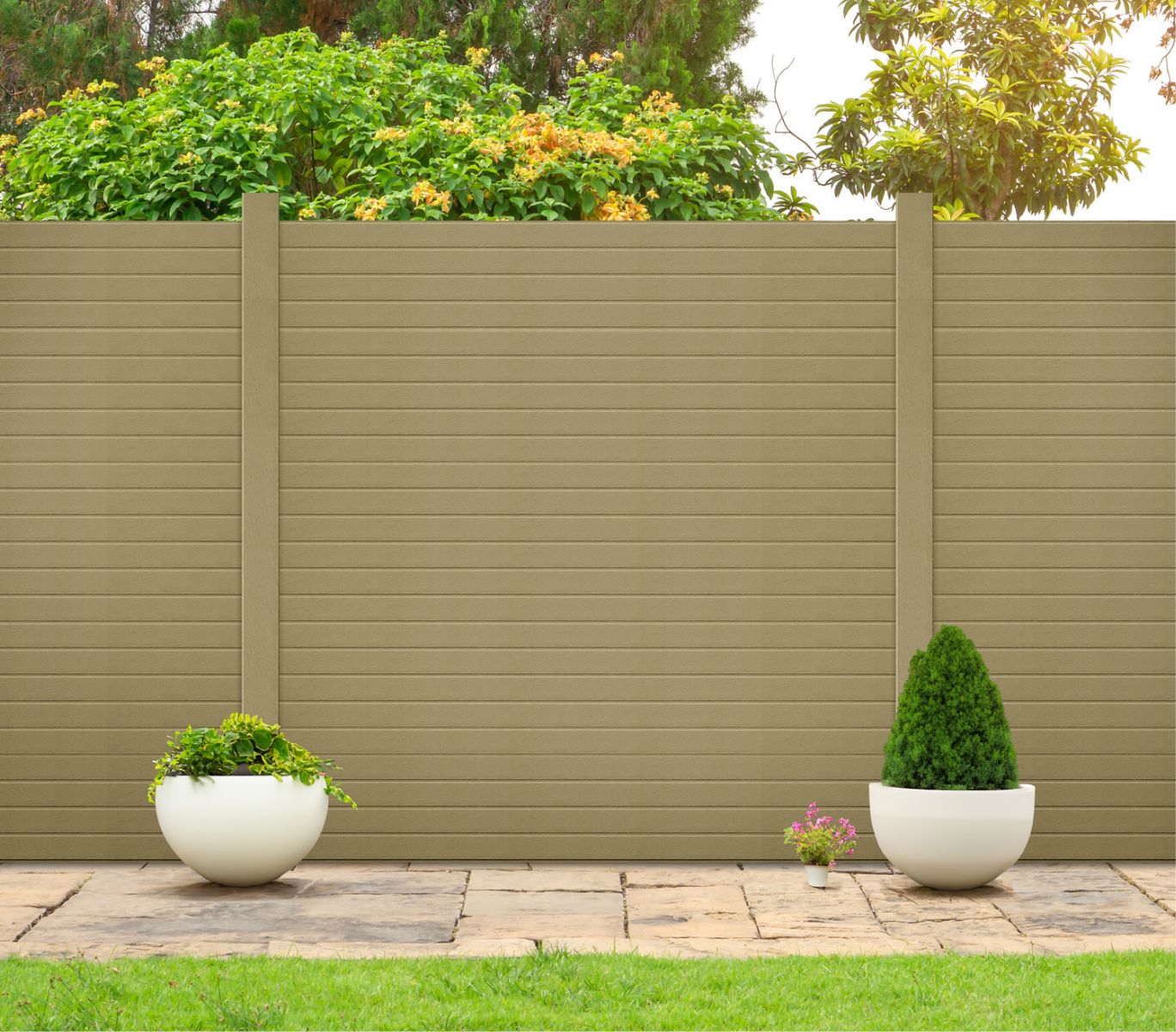 Eco fencing offers a clean, contemporary finish that enhances any outdoor space. Because the colour is integrated throughout the material, it won’t peel, flake, or fade unevenly like painted timber.